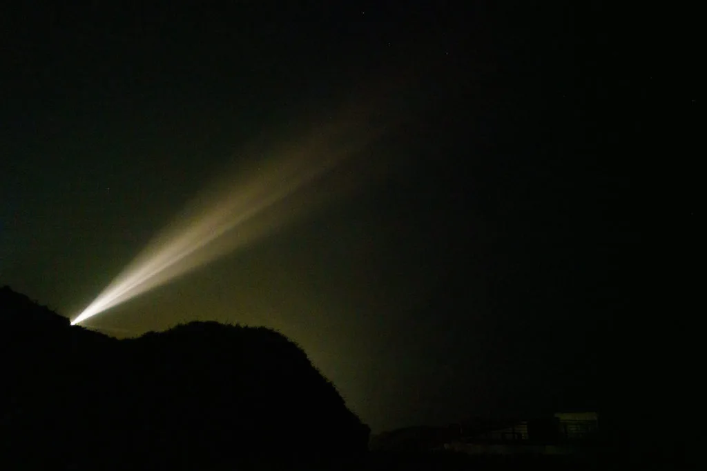 三貂角燈塔是以固定的速度在給遠處的船隻導航,幾乎360度的強光環繞。