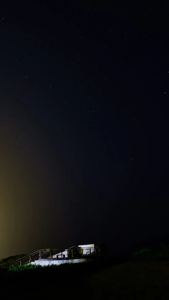 藍調一下就沒有了, 取而代之的是漆黑的夜空和陣陣的海浪聲。 上面這張圖的左側有些許的黃色, 這是因為四角窟觀景台在三貂角燈塔照射的範圍, 燈塔的光暈會讓照片多了光染的效果。