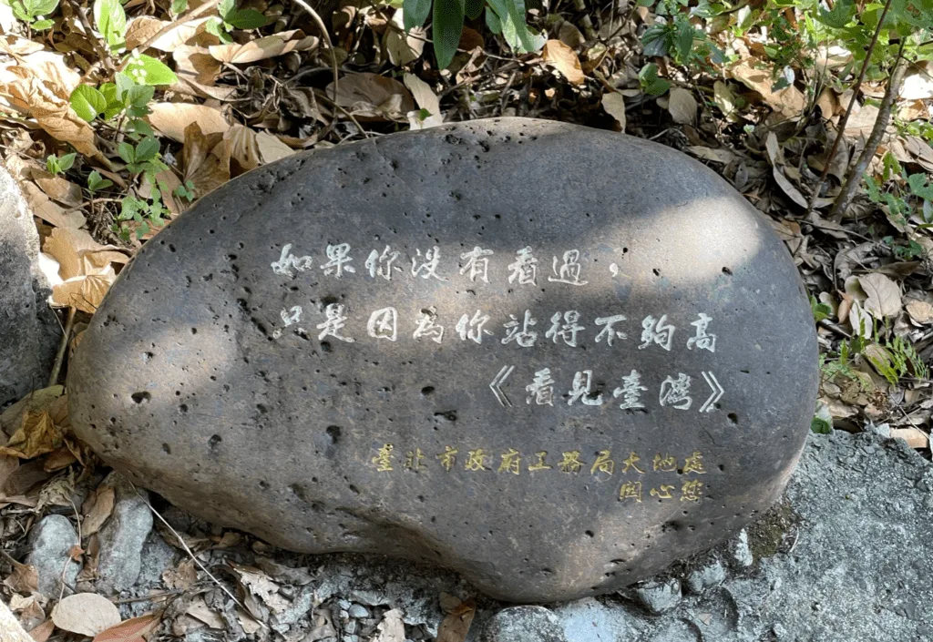 象山其實不高, 但是好幾段路很陡。所以上去的時候倘若平日運動量不夠, 是很喘的一件事。喜歡象山的步道, 規劃的非常棒。 往往在你需要喘氣的地方就會有一些文字鼓勵你和激勵你。