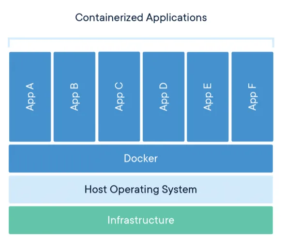 使用Docker和VM最大的差異是, 容器(container)不需要額外的操作系統。把應用程式所需要的libary, 代碼和環境設定等打包成一包。