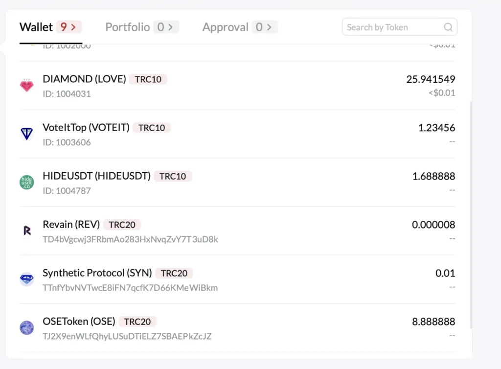 用冷錢包的好處是就算一堆人空投幣給你, 只要沒有安裝這個幣別, 都不會出現。 tronscan 一下就發現我其實還默默的被空投了許多幣種。