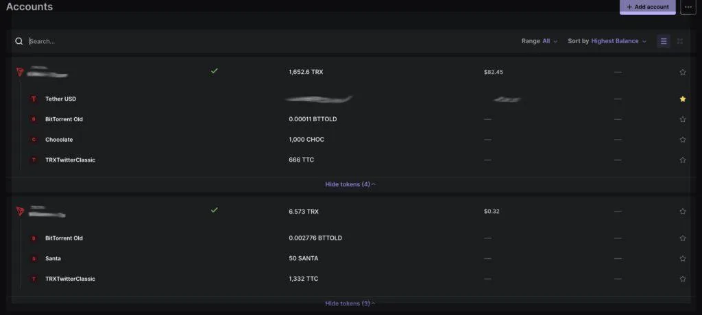 最近發現一個很奇怪的狀況, 就是每次我轉帳USDT出去後就會收到很多小額的免費USDT款項和一些奇怪的幣。 目前收到過的奇怪的幣有: Santa, BitTorrent Old, Chocolate, TRXTwitterClassic等。