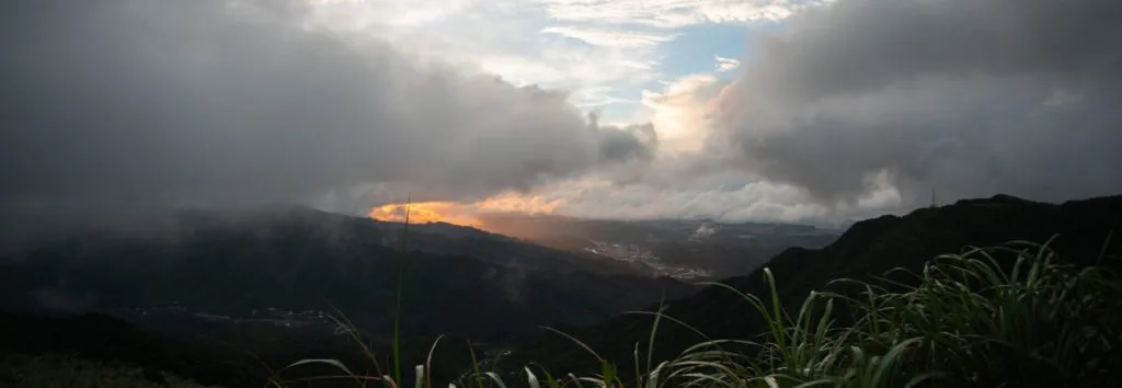 昨天不厭亭日落時間大約在5.45pm。 開車經過九份沿著102縣道一直開,彎彎的山路就抵達了。今天滿天的烏雲蓄勢待發, 整個環境是陰暗的和充滿霧氣的。因為地勢夠高吧, 彷彿身處雲霧之間。