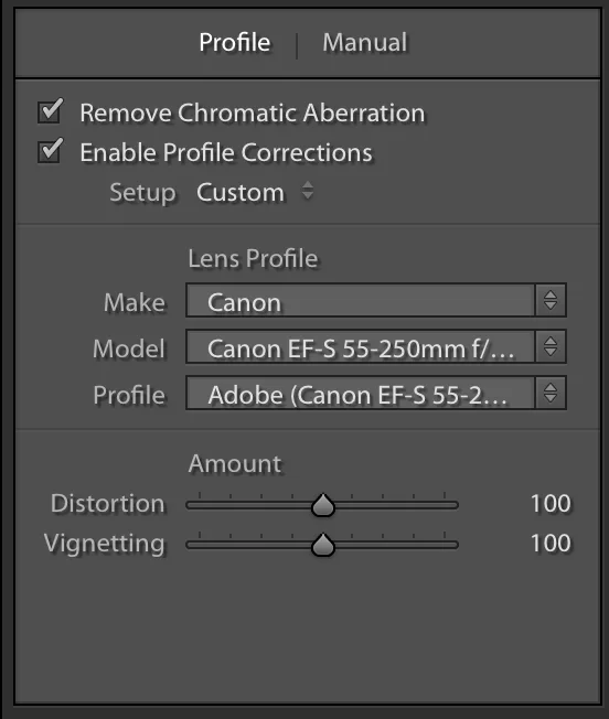- Lightroom 里面可以使用镜头的 Profile 来修正广角镜的暗角的问题。