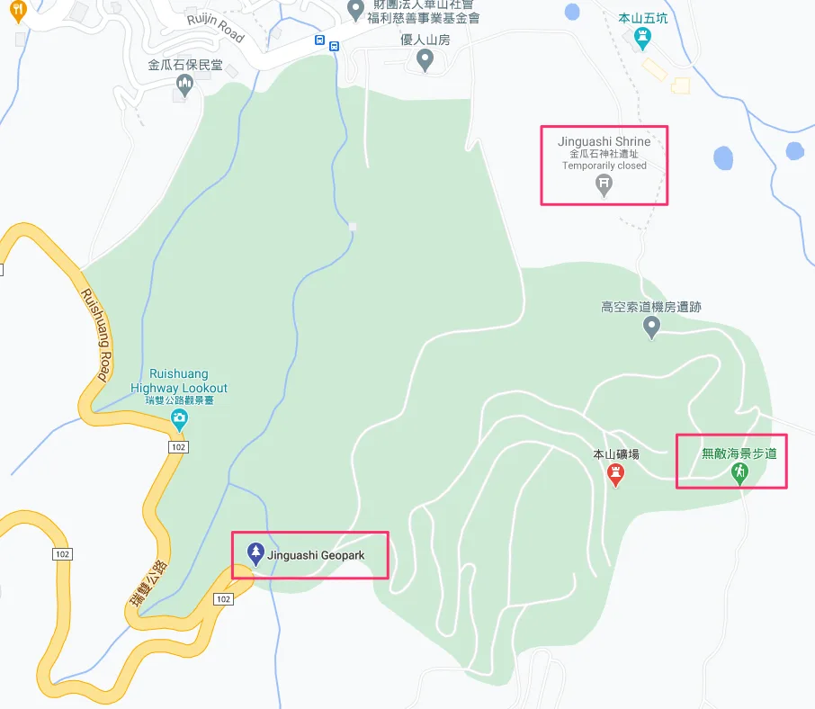 之前去不厭亭就有經過金瓜石地質公園了, 那時候公園的入口有流動洗手間,所以也就經過並沒有往內走。往內走後可以眺望不遠處的無耳茶壺山。 多個景點都在九份和金瓜石的交界,不厭亭、九份老街、八斗子車長、陰陽海、黃金博物館、無耳茶壺山等等,高密集度的POI景點促使了我最近假日就往九份跑!