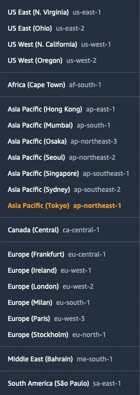 AWS的另外一個好處是你可以選擇把你的伺服器放在不同的國家。