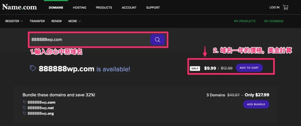 我自己主要選擇name.com上購買域名, 原因有幾個: