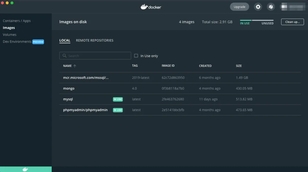 成功安裝後在Docker dashboard可以看到mysql 和 phpmyadmin
