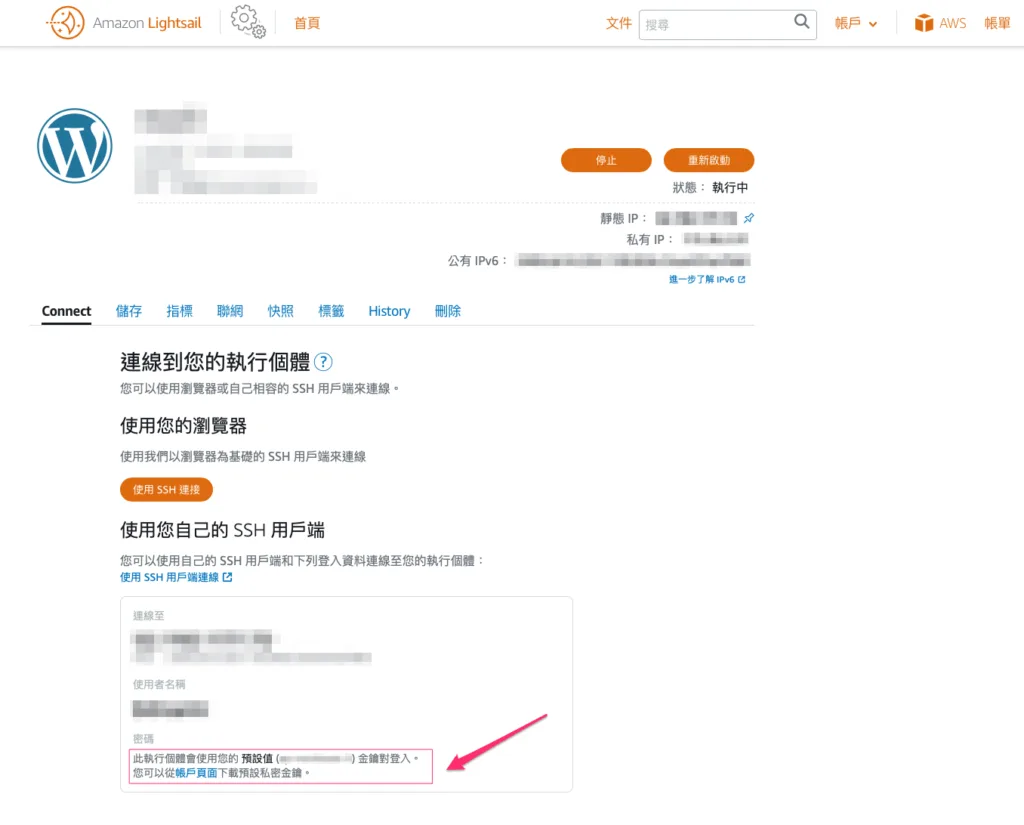 從帳戶頁面進入去下載你的lightsail 的private key。
