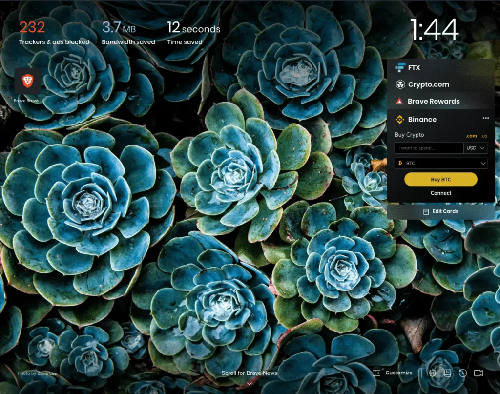 Brave為一採用Chromium專案的瀏覽器,它內建廣告與追蹤器的封鎖機制,還在2018年整合了Tor軟體並推出隱私標籤Private Tabs with Tor,強調可避免用戶遭到ISP業者、Wi-Fi供應商或網站業者的追蹤。
