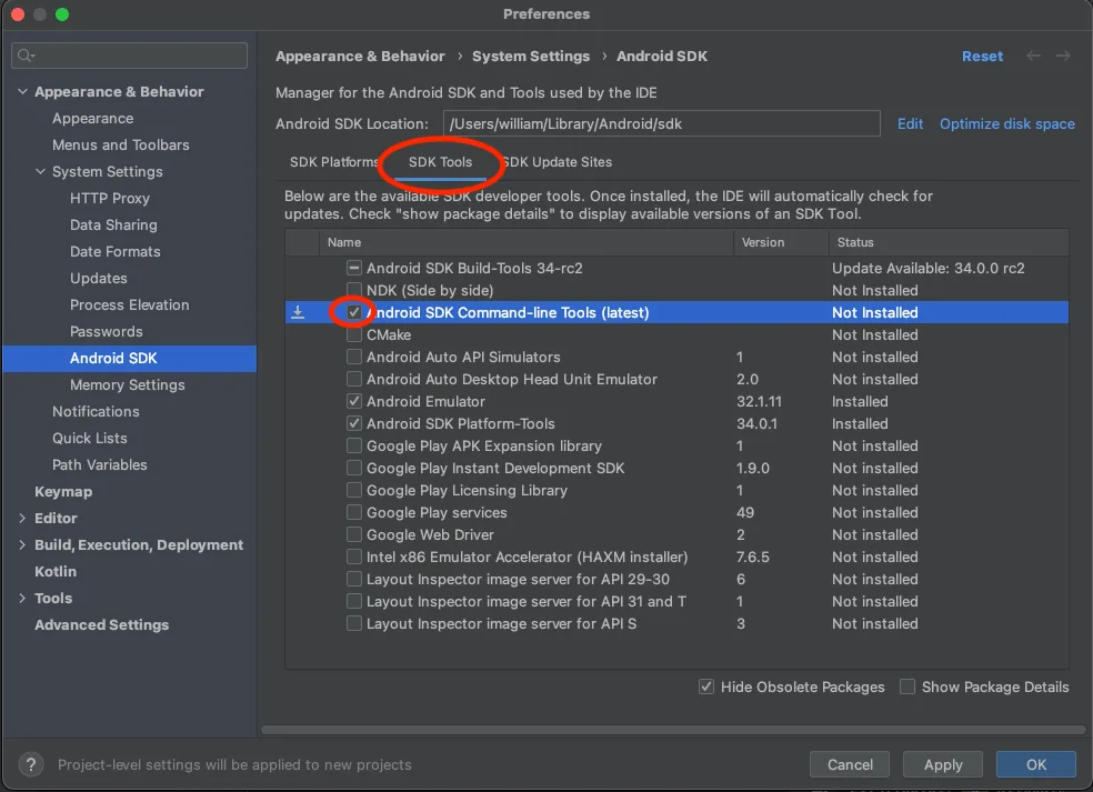 × cmdline-tools component is missing
