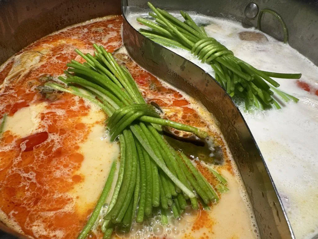 好了, 來說說主餐! 湯頭香、濃! 尤其愛左邊的泰式咖哩湯頭,滿滿的椰奶香!