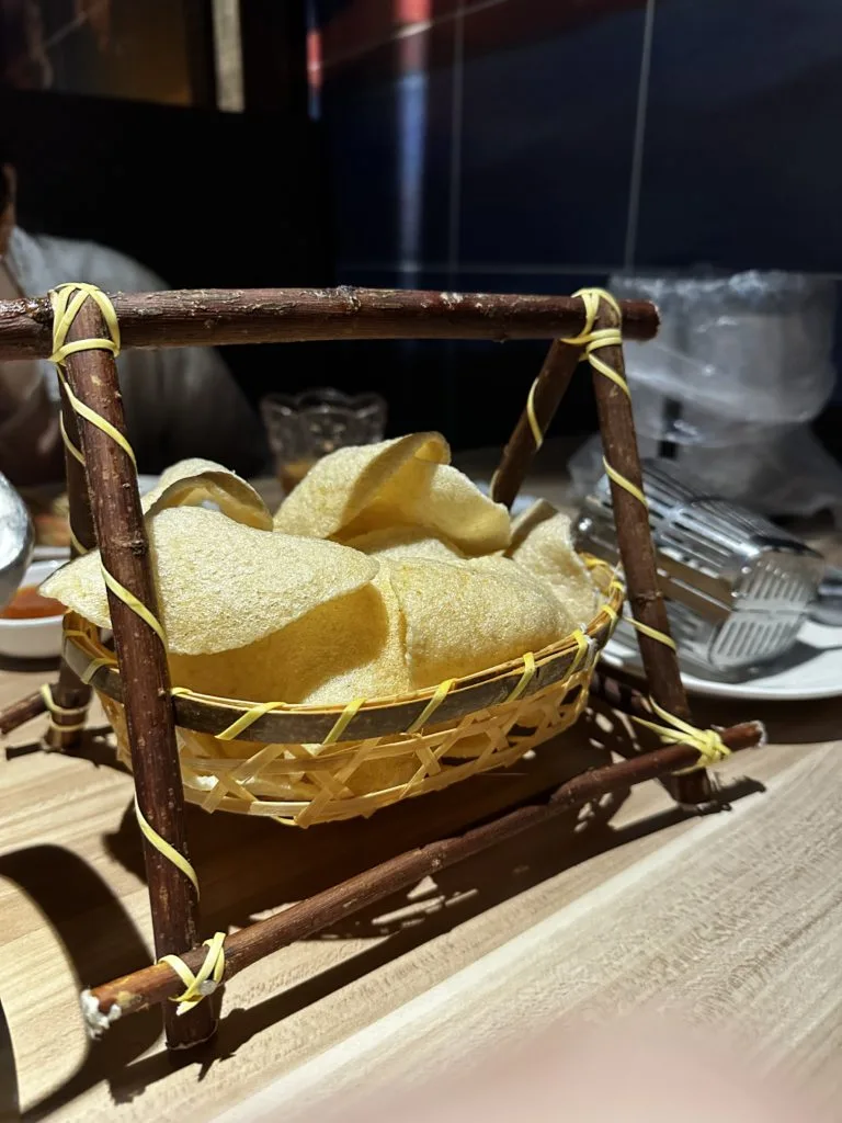 這裡CP值最高的應該是蝦片了, 80大元來一盤,用餐的時候可以一直續加。 在在在。。。。離開的時候, 還會給妳一大包!
