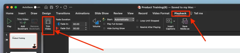 The solutions provided on the Microsoft site hinted that as long as we export the video and compress it using 3rd party software and reimport that into Powerpoint again that would resolve the issue. On a Window version of Powerpoint the solution is somewhat simpler.