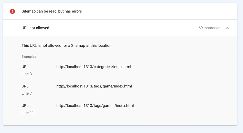 Started playing around with Hugo over the weekend. It is really a super fast and well implemented rendering engine. When I deploy the website to the production environment and submit the sitemap to Google Search console, I get the following error: