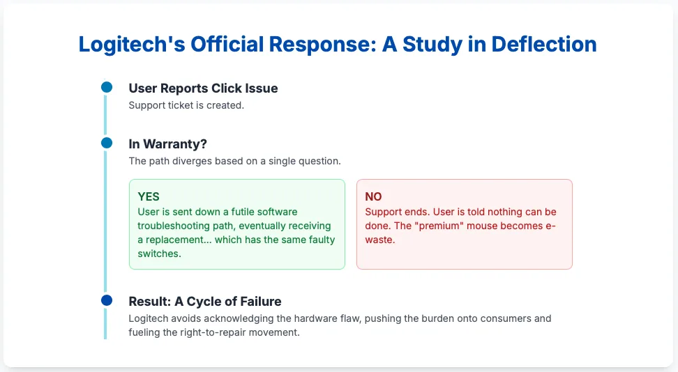 An analysis of Logitech’s official response to this widespread hardware failure reveals a consistent and seemingly deliberate strategy. Rather than acknowledging the systemic hardware flaw, the company’s support channels funnel users towards irrelevant software fixes, rely on warranty replacements to manage individual complaints, and maintain a public silence on the root cause.